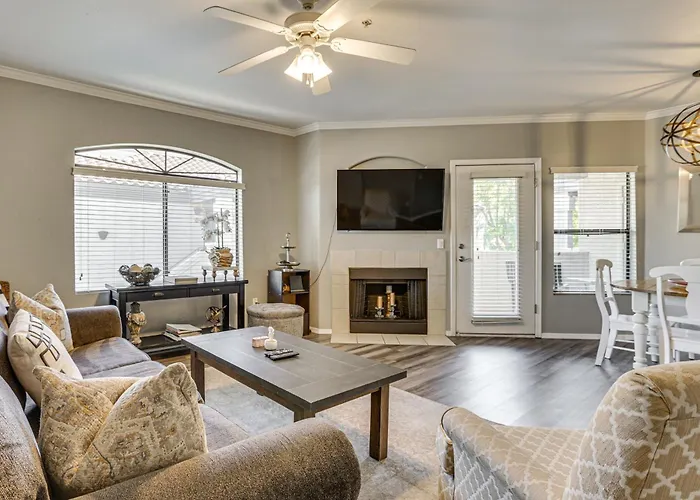 Pool And Gym Access Scottsdale Gem Near Golfing!, un apartamento de 107 m², está situado a unos 10 minutos en coche del Taliesin West, y a 2 km de la Escuela de Arquitectura en Taliesin. Este apartamento ofrece acceso a un club de golf, satisfaciendo así las necesidades de los huéspedes activos.